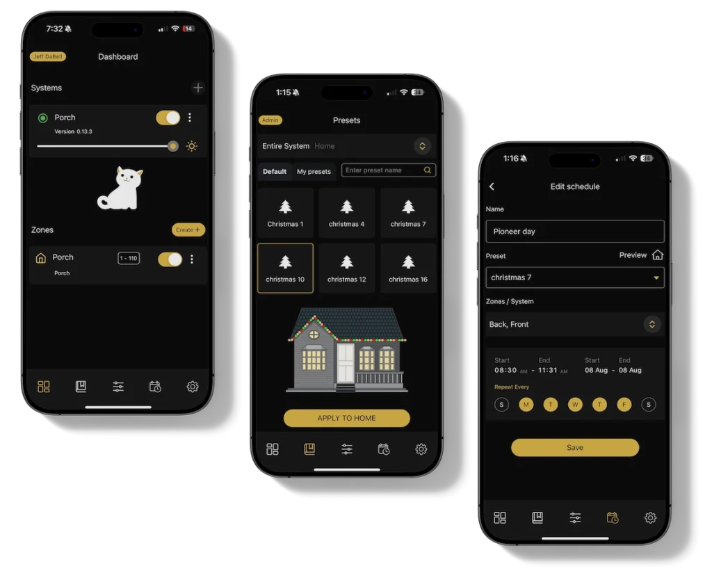 Whether you want to show off on game day, celebrate the holidays, or provide an illuminating ambiance, you’ll be able to customize your lights however you like, whenever you like. Choose Bosso Smart Lights for your permanent outdoor lighting solution.